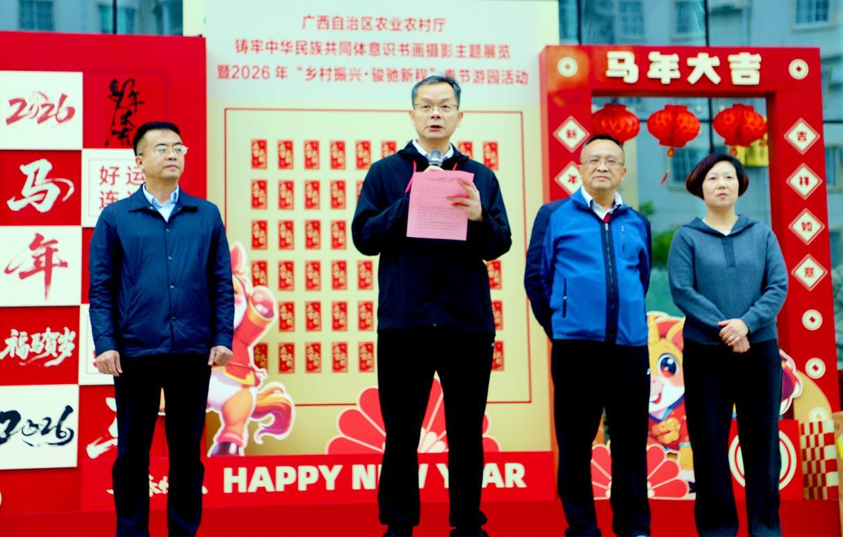 2月7日,自治区农业农村厅举办铸牢中华民族共同体意识书画摄影主题展览暨2026年“乡村振兴·骏驰新程”春节游园活动,自治区农业农村厅副厅长吴朝晖发表新春讲话,一级巡视员、副厅长唐咸来,副厅长刘康、欧毅霞出席活动,与全厅干部职工一起欢聚一堂,共迎新春。