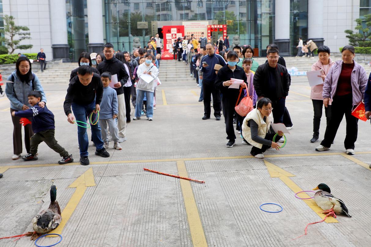本次游园活动内容丰富、形式多样,融趣味性、互动性、文化性于一体,让干部职工在轻松玩乐中感受传统年味,增进彼此情谊。写春联、手工福字拓印、非遗糖画制作等传统民俗项目人气爆棚,大家提笔挥毫写新春祝福,亲手拓印福字迎吉祥,看着非遗匠人勾勒出栩栩如生的糖画,沉浸式体验中华传统文化的魅力;套鸭、滚铁环、摸石头过河、躲避大摆锤、健康呼啦圈等趣味游戏热闹非凡,现场喝彩声、欢笑声此起彼伏,大家齐心协力参与挑战,在互动比拼中收获快乐与惊喜;百科知识问答环节则以答促学,围绕“三农”知识、传统文化、科普常识等内容展开,大家积极抢答,在趣味答题中增长知识、拓宽视野。