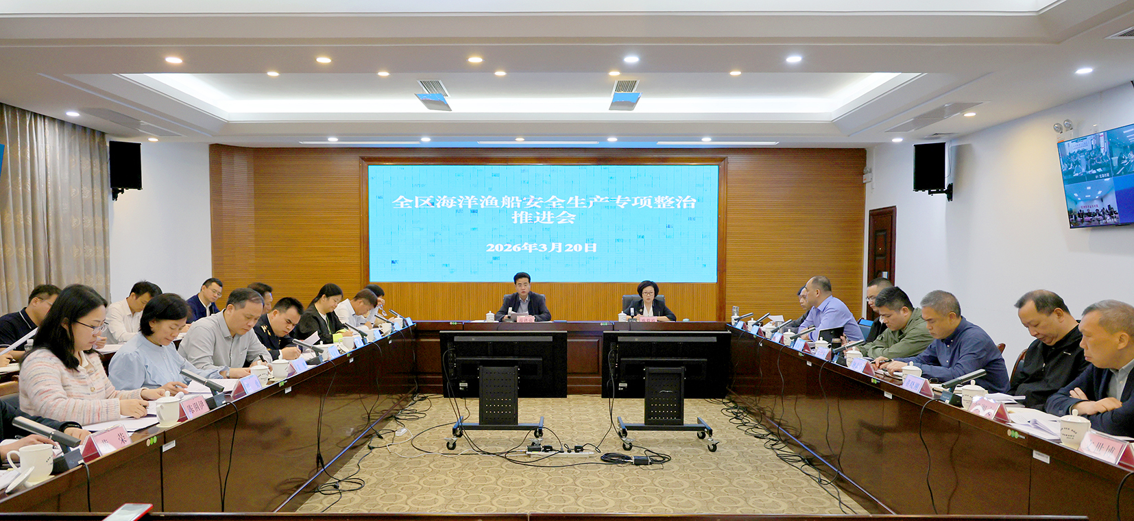 自治区农业农村厅分管负责同志及相关业务处室负责人,自治区工业和信息化厅、公安厅、交通运输厅、应急管理厅、气象局,广西海警局,广西海事局等单位负责同志在主会场参加会议。北海市、防城港市、钦州市人民政府分管副秘书长及各相关部门负责同志在各分会场参加会议。