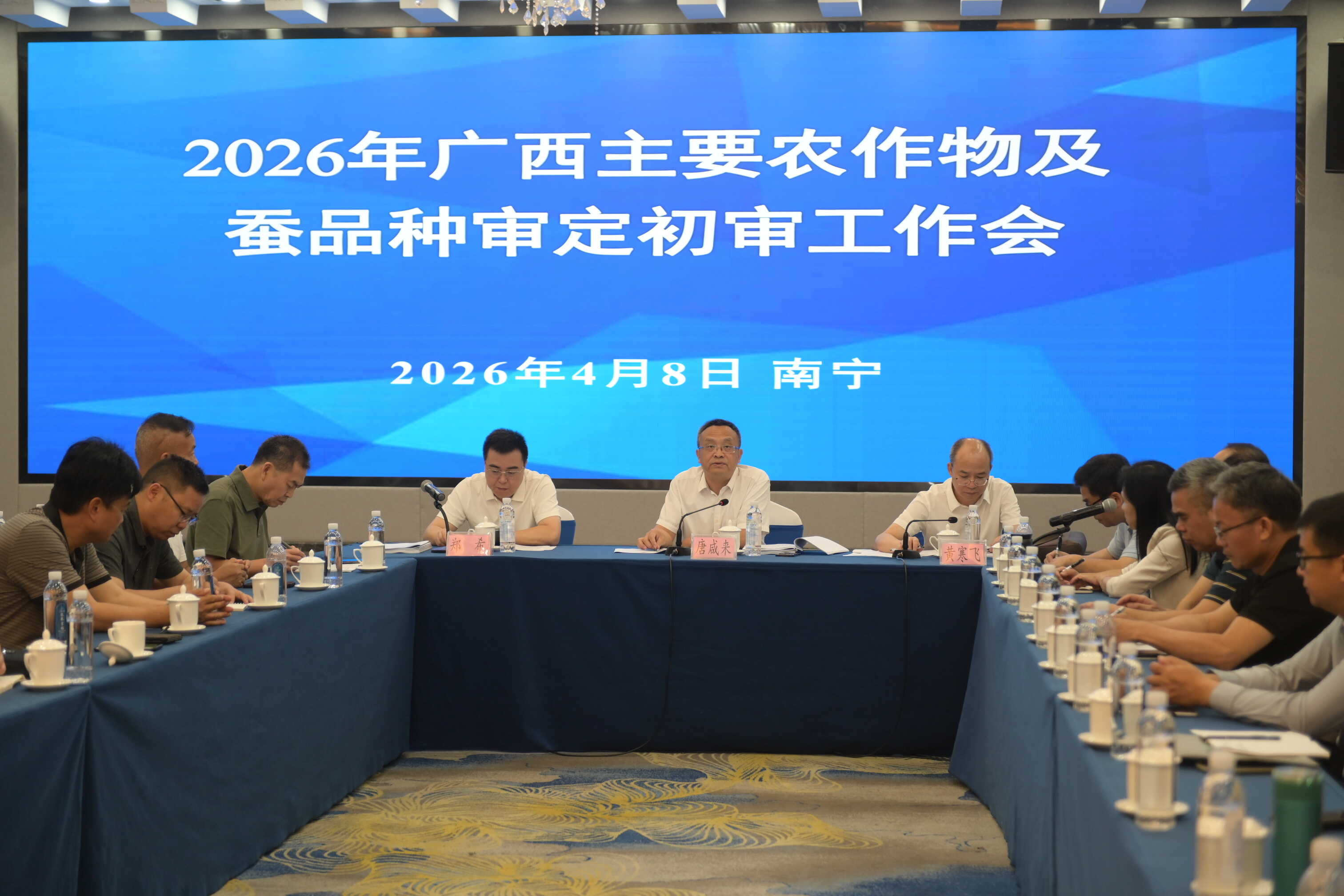 4月7-9日,2026年广西主要农作物及蚕品种审定初审会在南宁召开,对完成试验程序并提交审定的稻、玉米、大豆等主要农作物及蚕品种进行初审工作。自治区农业农村厅党组成员、副厅长,自治区农作物品种审定委员会主任委员会主任唐咸来出席会议并讲话。