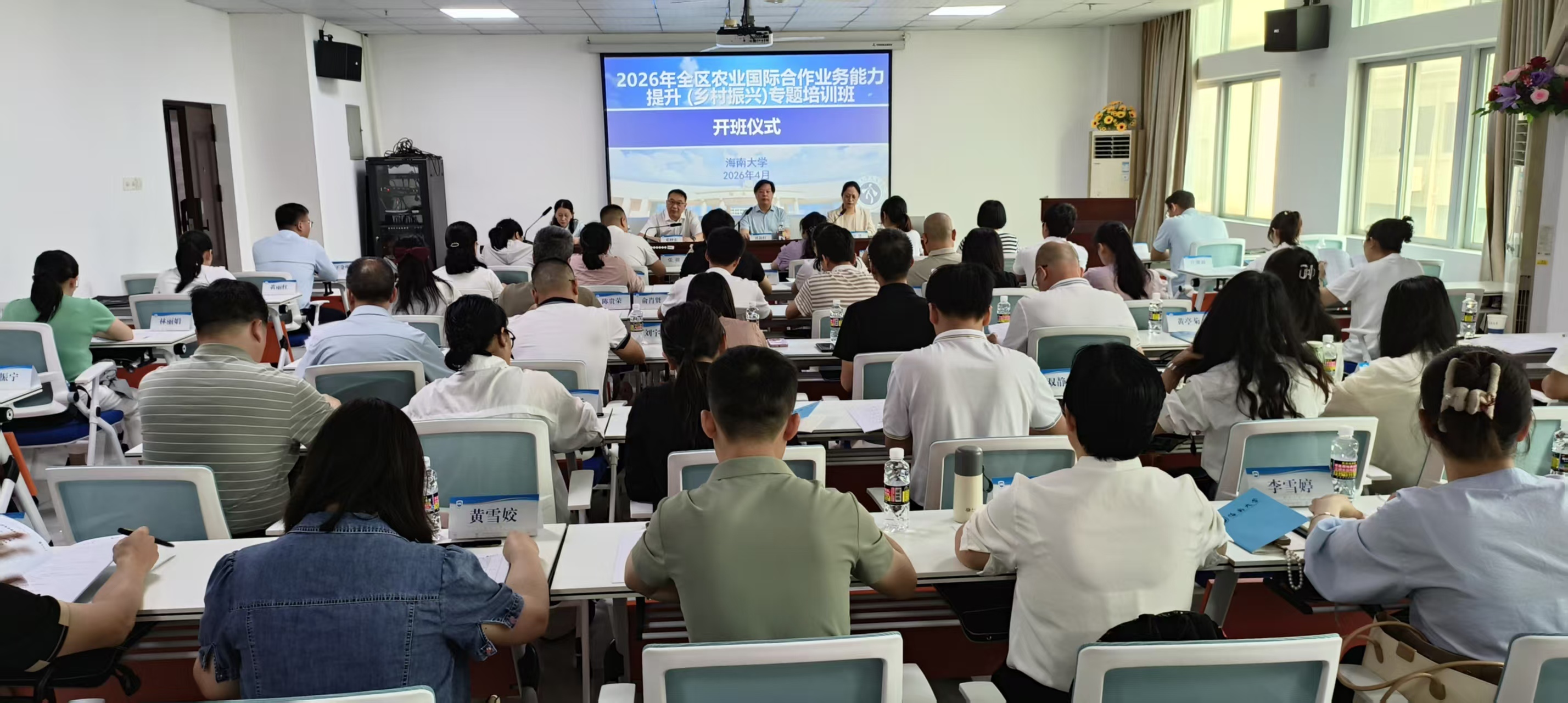 近日,2026年全区农业国际合作业务能力提升(乡村振兴)专题培训班在海南大学顺利举办。自治区农业农村厅党组成员、自治区乡村振兴外资项目发展中心主任邓妙宏出席开班仪式。