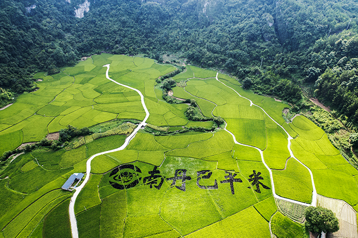 近日,南丹县歌娅思谷田园综合体创建区内,一幅以农产品地理标志为主题的稻田画映入眼帘。该稻田画长155米,宽28米,以农产品地理标志为主题,包含“农产品地理标志”图标以及“南丹巴平米”艺术字样两大元素,在田埂中深耕“作画”,一幅惟妙惟肖的稻田画呈现在人们眼前[鼓掌]。歌娅思谷田园综合体是国家农产品地理标志产品的生产基地,通过稻田画将创意农业与休闲旅游相结合,吸引众多游客前来打卡观赏。