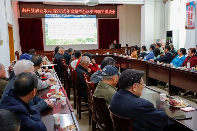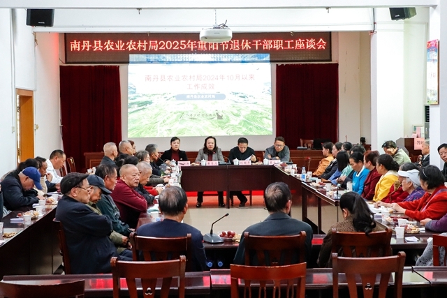 金秋重阳时,浓浓敬老情。为进一步弘扬中华民族尊老、敬老、爱老的传统美德,表达对离退休老干部的关心关爱,值重阳节之际,南丹县农业农村局组织召开2025年重阳节退休干部职工座谈会。该局领导班子与退休老同志们欢聚一堂,共庆佳节,共叙情谊,共谋南丹“三农”事业发展新篇章。