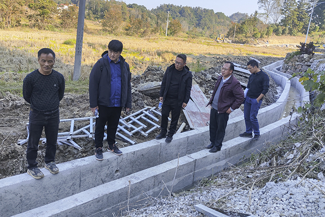 县农业农村局副局长莫永岳带队到项目现场进行督查,在六寨镇麻阳村项目材料储存现场检查了水泥、砂、石的质量情况,并根据设计的标准对渠道进行抽查,核对渠道渠肩厚度、渠道尺寸、重点检查了项目材料的质量检测报告等有关数据。莫永岳副局长强调,农田水利设施是农业重器,各参建单位要积极履职推进项目建设,不但要确保建设内容贴合实际、建设成果质量合格,而且要按照时间节点完成项目的建设,及时让群众享受项目效益。