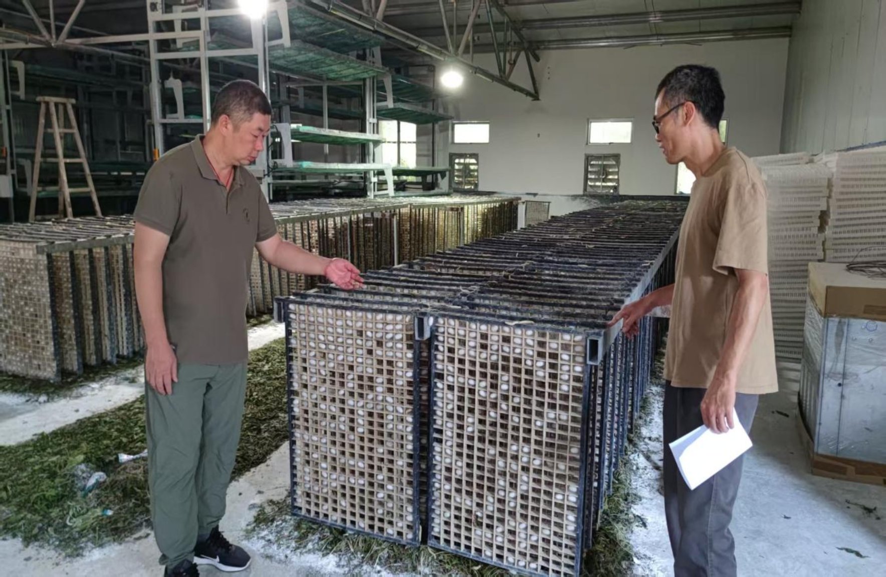 农业专家现场查看广西林胜堂蚕具有限公司325空方格蔟结茧情况