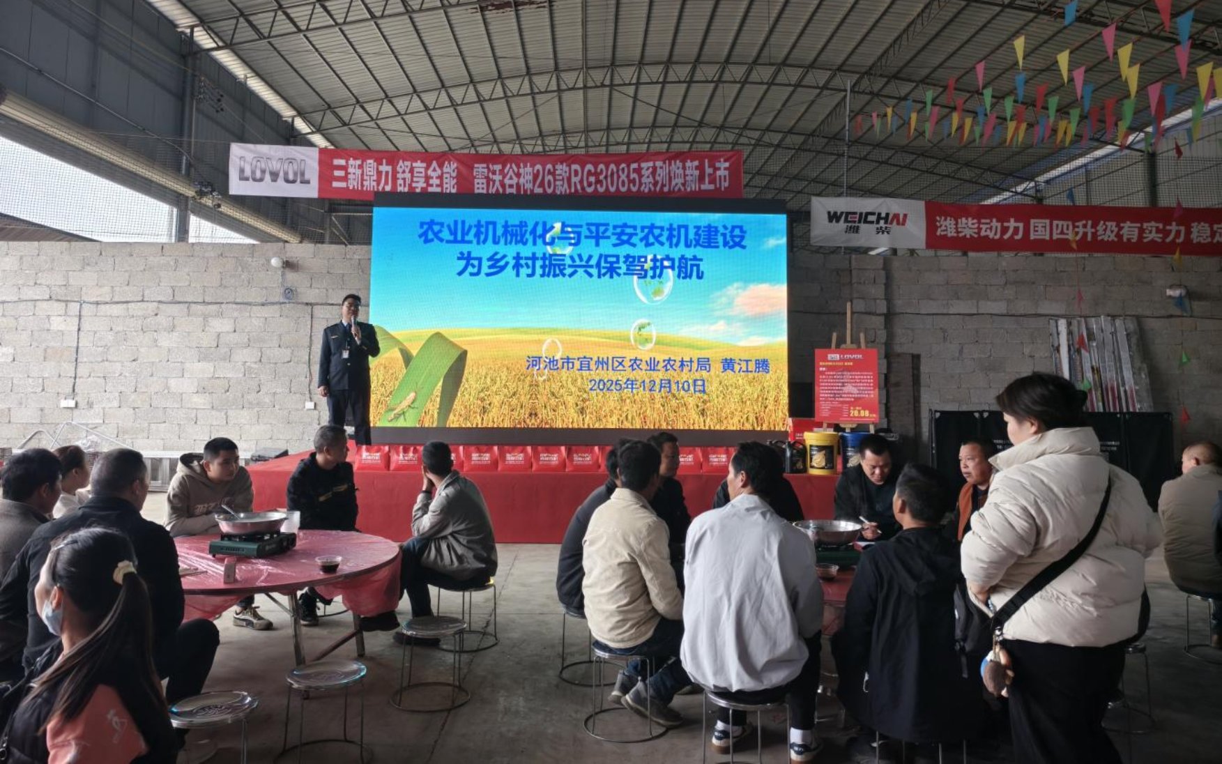 2025年12月10日,河池市宜州区农业农村局农业综合行政执法大队与河池市公安局交通管理二大队深入广西吉峰聚力农业科技发展有限公司开展农机安全宣讲活动。以辖区近年发生的农机安全生产事故为警示,结合农时与实操指导,为80余名农机手筑起安全防线。