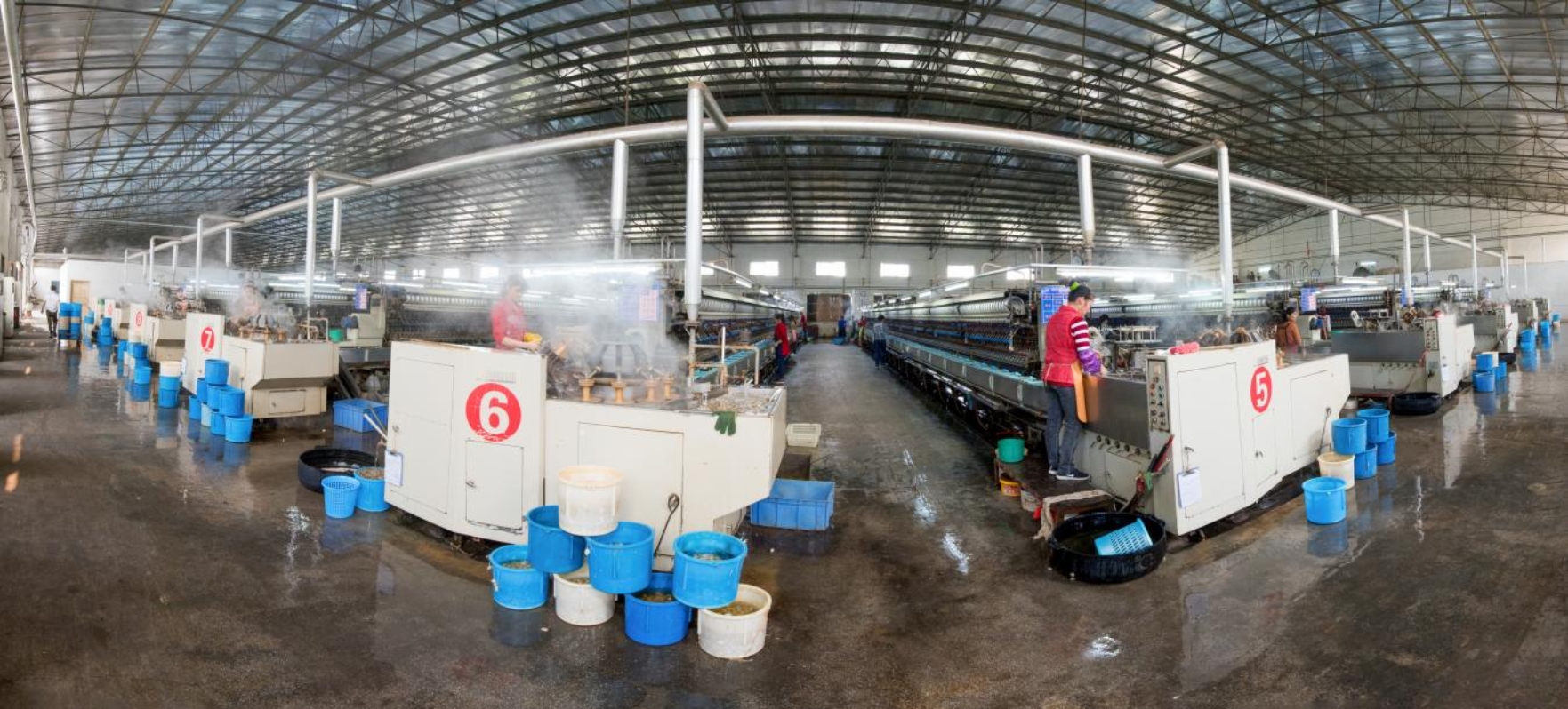 图为河池市东方丝路丝绸有限责任公司缫丝生产车间。