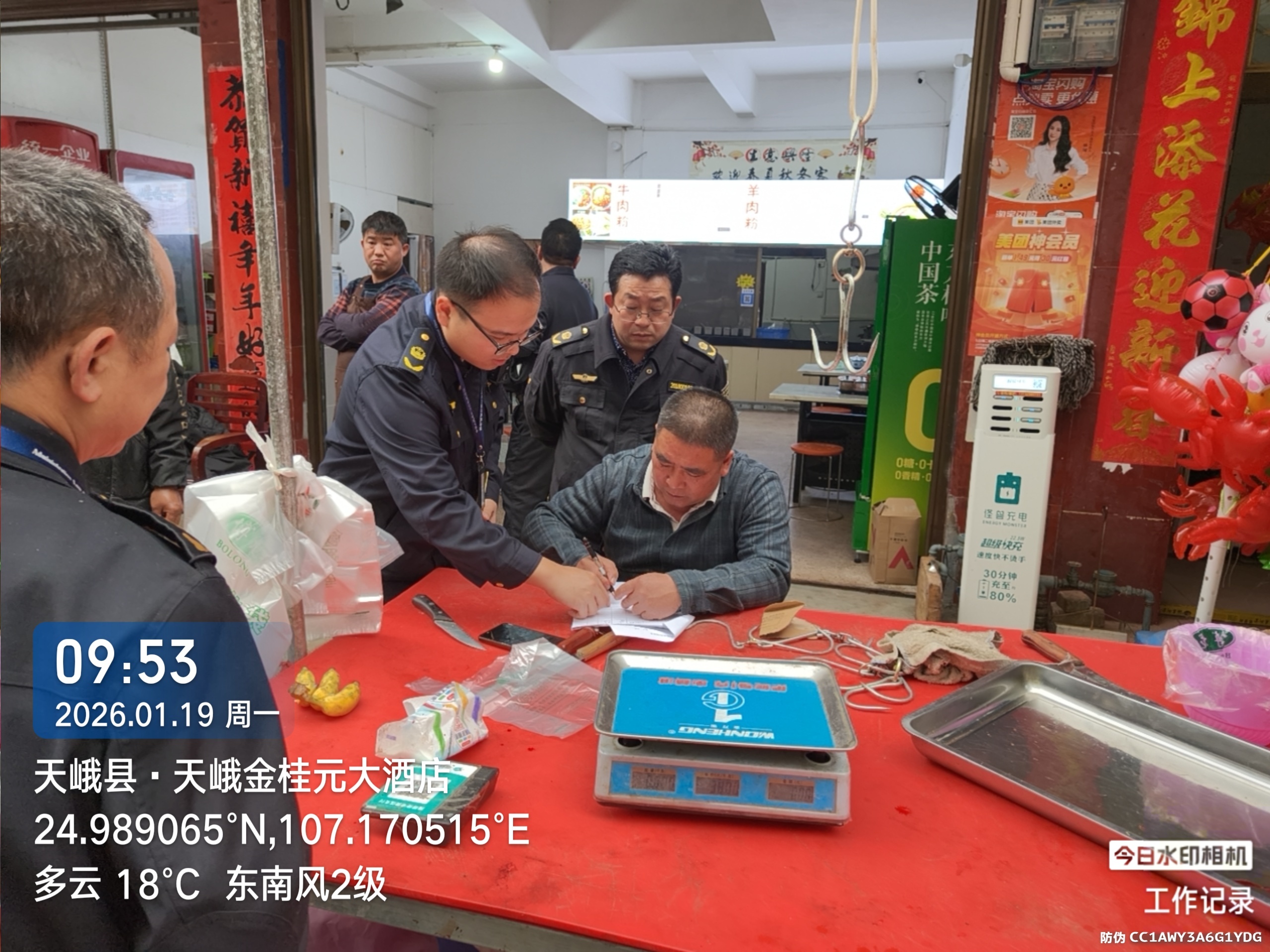 为切实保障群众饮食安全,让全县各族群众度过平安祥和的佳节,1月19日,天峨县农业农村局、县市场监督管理局、县城市管理执法局、县公安局等部门人员组成联合执法检查组,对天峨县县城区汉军、塘英、二桥头三个农贸市场及周边逐一开展集中检查,精准排查风险隐患,依法整治违法违规行为,以多方协作织密食品安全防护网,筑牢群众“舌尖上的安全”防线。