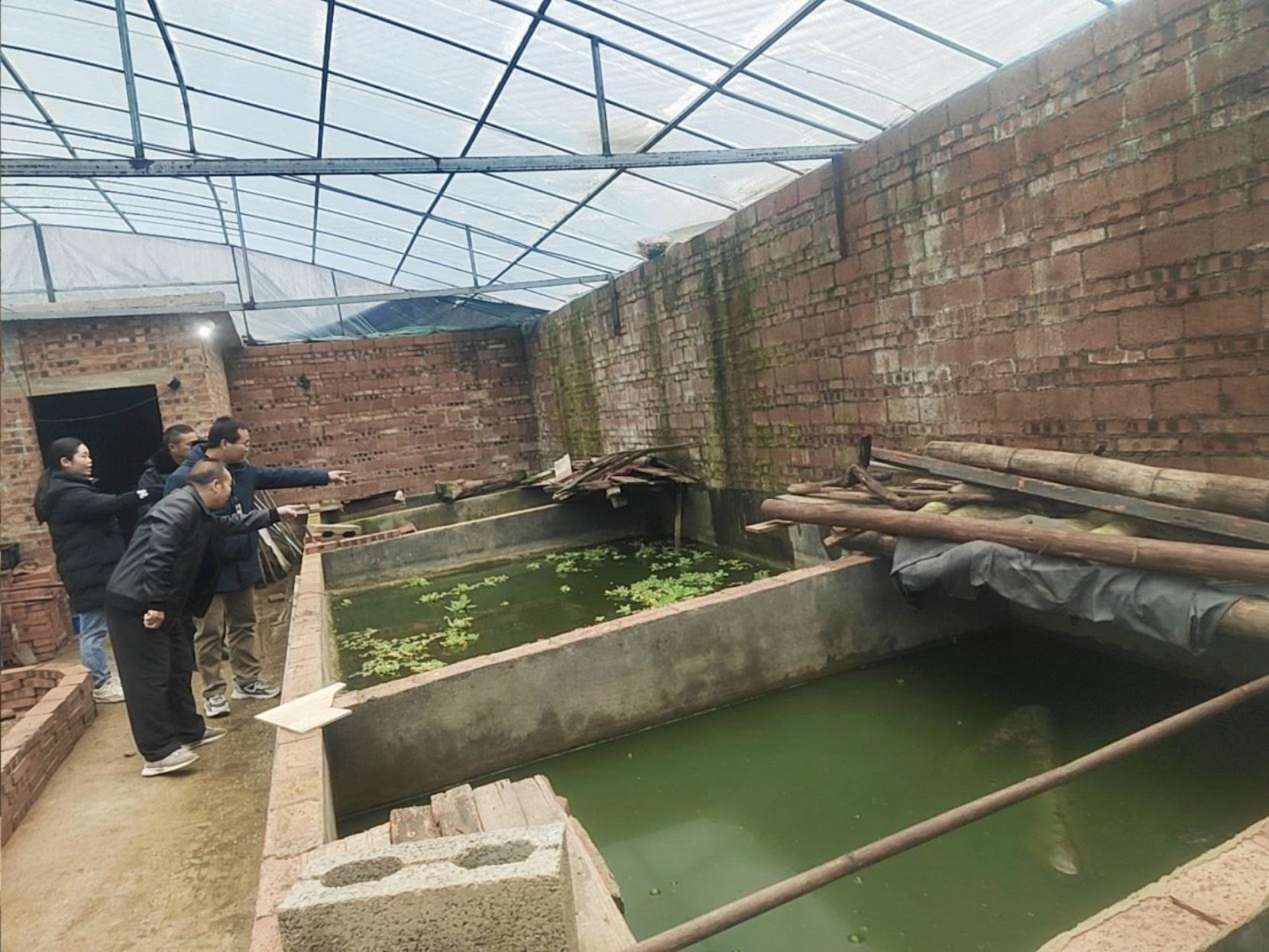 图为技术人员在北牙瑶族乡指导养殖户做好龟类抗冻防灾工作