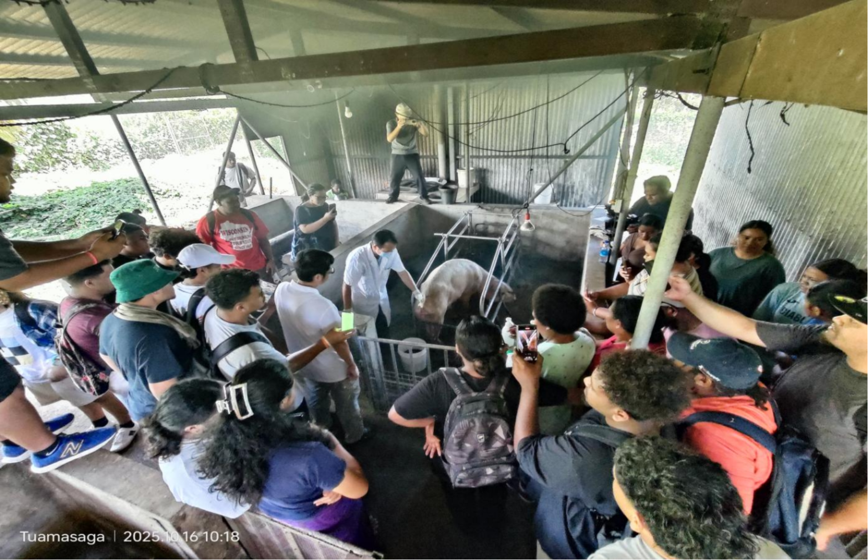 图为2025年10月16日,为南太平洋大学师生开展猪人工授精现场培训。