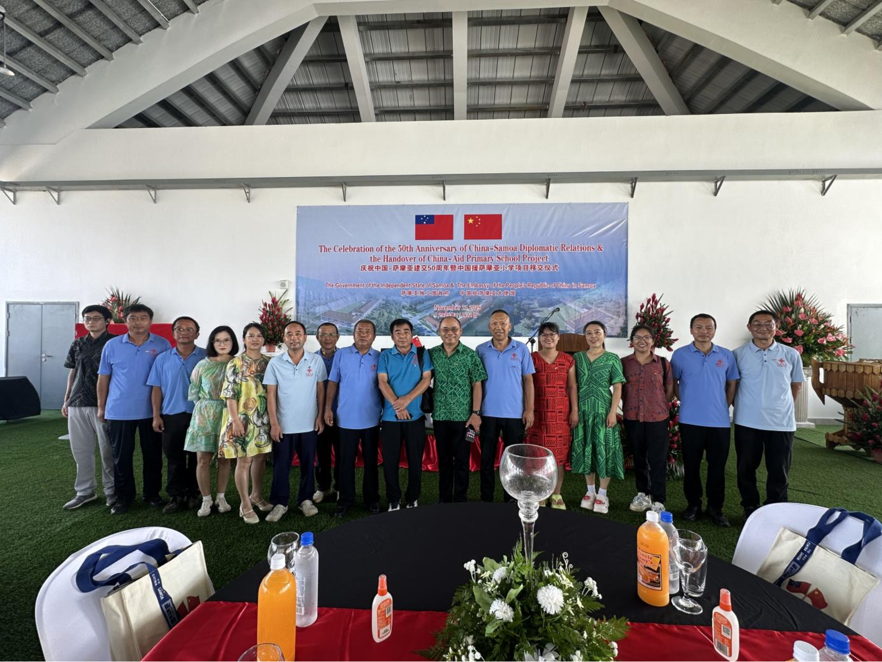 在开展技术援助的同时,石忠诚积极参与各类对外交流活动,成为中萨农业合作的民间使者。2025年9月18日,他参加中国驻萨摩亚大使馆举办的“纪念抗战胜利80周年”活动,在异国他乡重温历史,进一步坚定援外使命;10月22日,迎接商务部与萨方联合巡查,详细汇报农场工作推进情况,获得双方高度认可;10月30日,参与萨方“世界粮食日活动”,示范农场参展的农产品广受当地官员与民众好评;11月18日,接待粮农组织助理总干事兼区域代表阿卢埃·多洪先生一行,全面介绍示范猪场运营及技术推广成效;11月21日,出席中萨建交50周年纪念活动,见证中国援萨摩亚小学项目移交仪式,深切感受两国深厚友谊。此外,他还接待萨摩亚国会议员参观示范农场并合影留念,进一步扩大了农业援外项目的影响力。