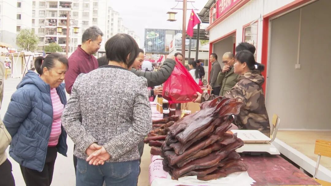 澄江镇党委副书记 丁方元:今天我们澄江镇农市大集有十六个村、社区,五十多个商户参加,都是我们都安本地的特色产品,春节临近,在促进农户收入的同时,也方便我们群众选购年货,在这里也祝大家新春快乐,马年马到成功。