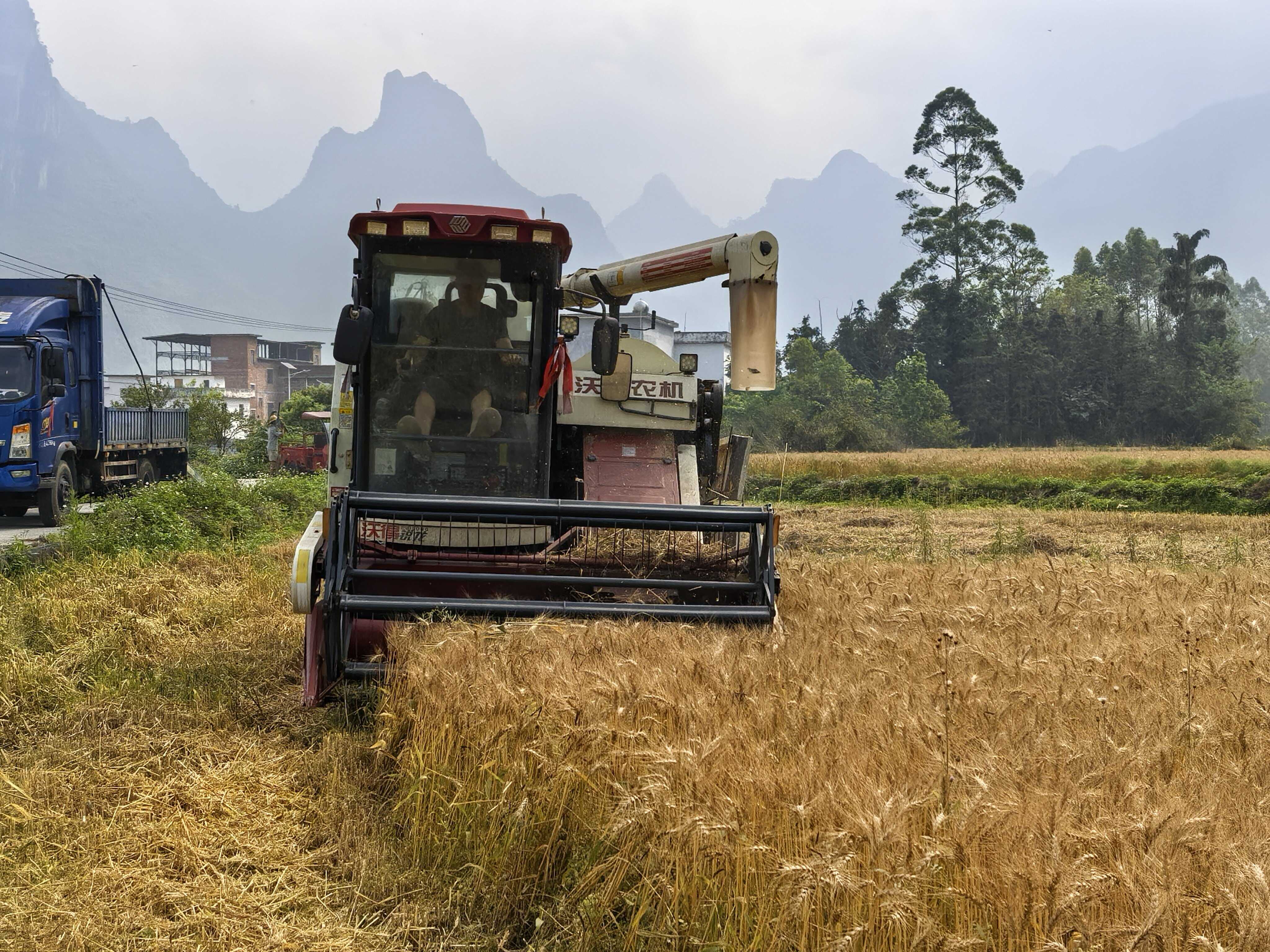 科技护航 河池市金城江区冬小麦喜开镰