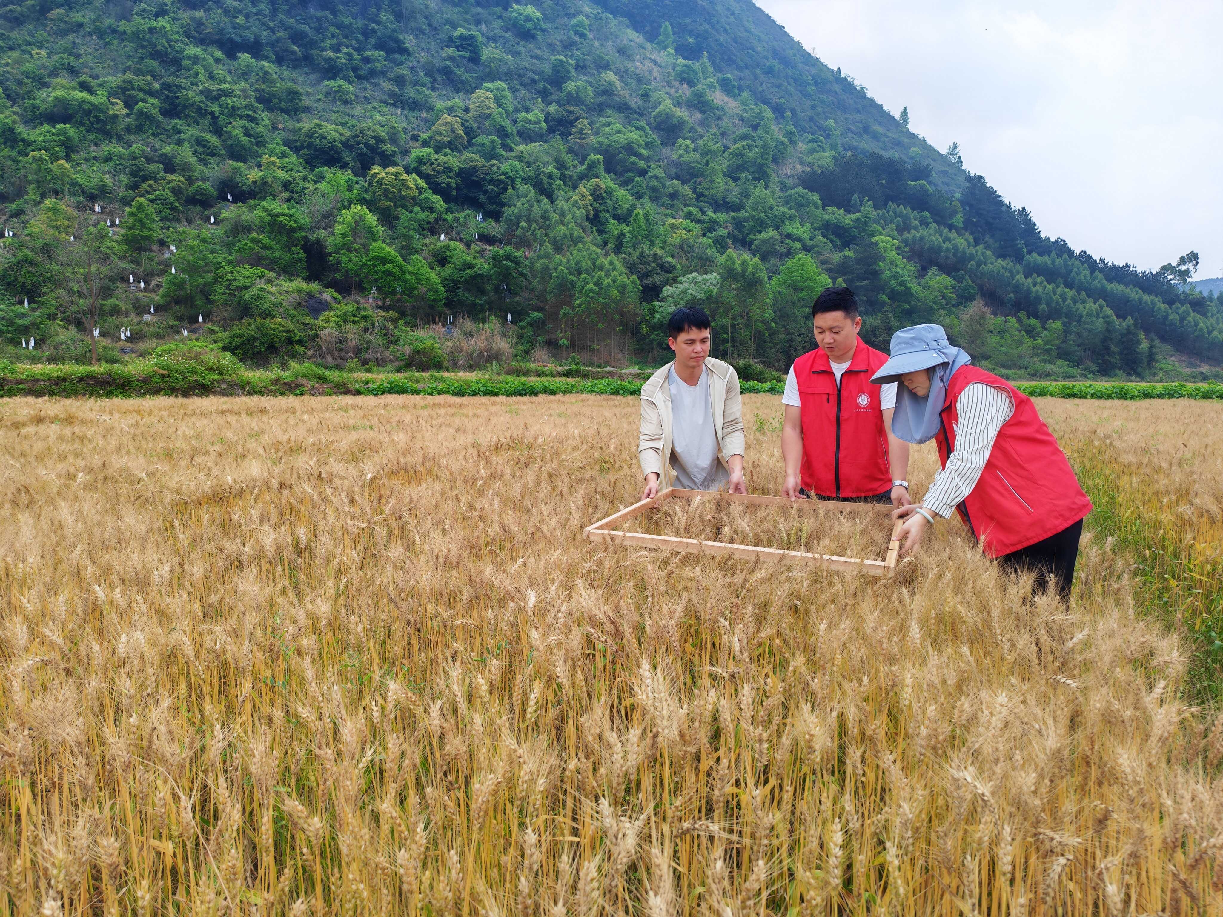近日,河池市金城江区依托基层农技推广项目建设的 500亩冬小麦示范基地完成测产验收,经去杂、水分测定等标准化流程,平均亩产达610斤,喜获丰收。