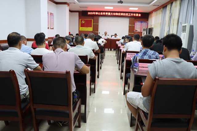 9月16日,钟山县召开2025年秋季重大动物疫病防控工作会议,加强动物防疫活动管理,提升公共卫生安全与人体健康保障水平,赋能钟山县乡村产业振兴高质量发展。县农业农村局和乡镇政府分管领导,各乡镇农业服务中心、县动物疫病预防控制中心和养殖企业负责人等50多人参加会议。