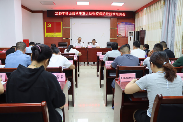 会议还集中开展2025年钟山县秋季重大动物疫病防控技术培训,与会人员针对当前动物疫病防控形势需要采取的防控措施进行深入交流探讨,筑牢动物防疫屏障。