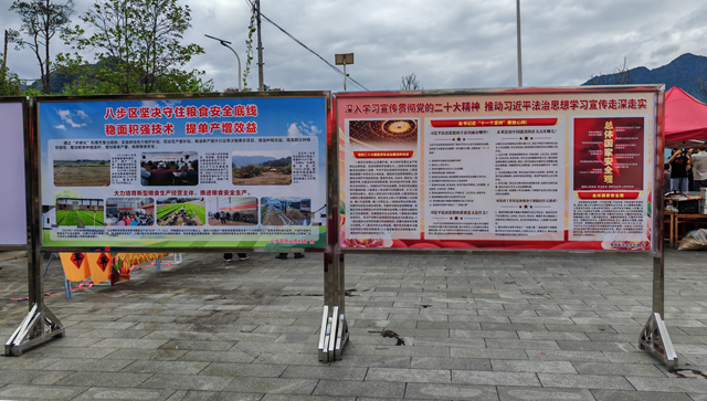 9月26日,贺州市农业农村局结合贺州市2025年庆祝中国农民丰收节暨金秋消费季活动,在八步区南乡镇大汤村开展了普法宣传活动。此次普法宣传围绕“深入学习宣传贯彻党的二十大精神,推动习近平法治思想学习宣传走深走实”“乡村振兴,法治先行”“严格规范涉企行政执法,优化法治化营商环境”三个方面制作了宣传展板,以乡村振兴促进法为中心,大力宣传了党的二十大精神、习近平法治思想、总体国家安全观、民法典及与农民群众生产生活密切相关的法律法规。