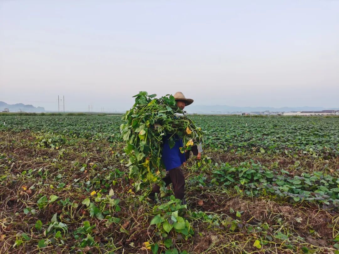 工人们忙着在松软的泥土里分拣红薯,除蒂、去泥、装袋……将色泽鲜艳、圆润饱满红薯打包,准备发往山东、广东以及本地各大商超和市场。