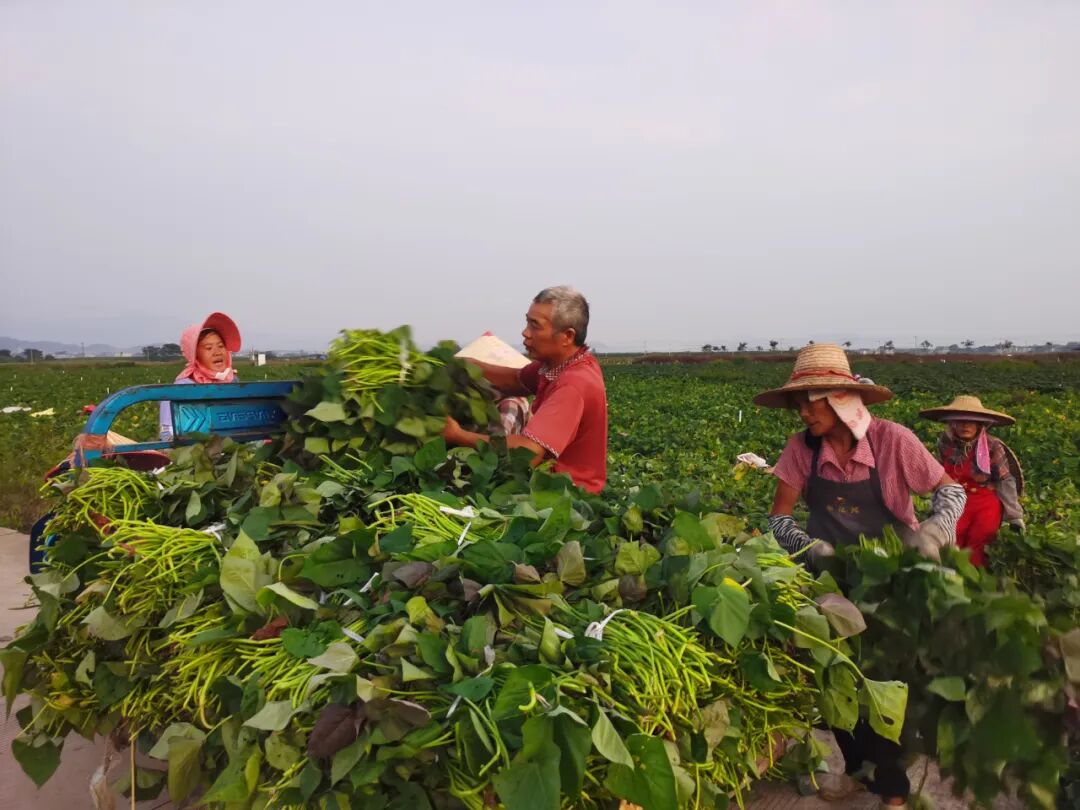 为进一步拉长红薯产业的“价值链条”,实现收益最大化。在红薯开挖之前,还把红薯藤条尾端作为优质种苗采收,100根为一捆,以一捆6元的价格订单式销往广东湛江种苗批发市场。据估算,红薯地亩产优质红薯苗10000根,光卖红薯苗亩产600元收入。而采收完红薯苗的成熟秧藤则以低价出让给当地有需求的群众自行采收。