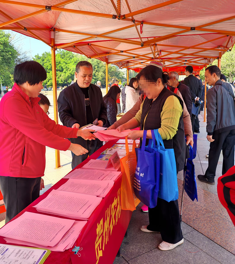 贺州市农业农村局工作人员为群众发放法治宣传资料
