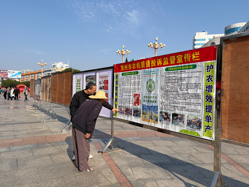 贺州市农业农村局工作人员为群众现场讲解农机质量鉴别和投诉知识