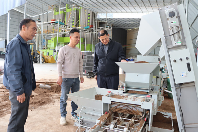 在回龙镇贺州市田美农业技术有限公司,农机服务队重点调研公司农机保耕提质情况,积极引导农机企业参与“促提质保生产 护农民增效益”活动,现场指导钟山县回龙镇区域性水稻产业中心项目谷物烘干、仓储中心、机械化犁翻、育秧中心、大米加工、无人机植保等方面建设运营工作,传授水稻集中育秧机械化、集约化、专业化生产的相关技术,大力推进农业机械化、智能化,助力水稻产业耕种收综合机械化关键措施落地见效。