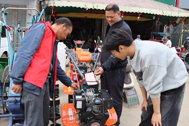 3月18日,贺州市农业农村局高级工程师汤年拼率农机推广专家一行4人与钟山县农机中心干部联合组成农机服务队,深入钟山县农业生产企业、农机销售门店、农机合作社、农机大户开展农机3·15行动,为春耕生产保驾护航。