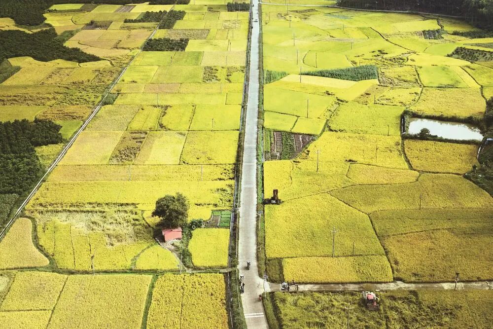 村庄里,房前屋后、广场空地上,随处可见晾晒的新稻,在阳光下闪烁着金色的光芒,绘就了一幅欣欣向荣的丰收画卷。