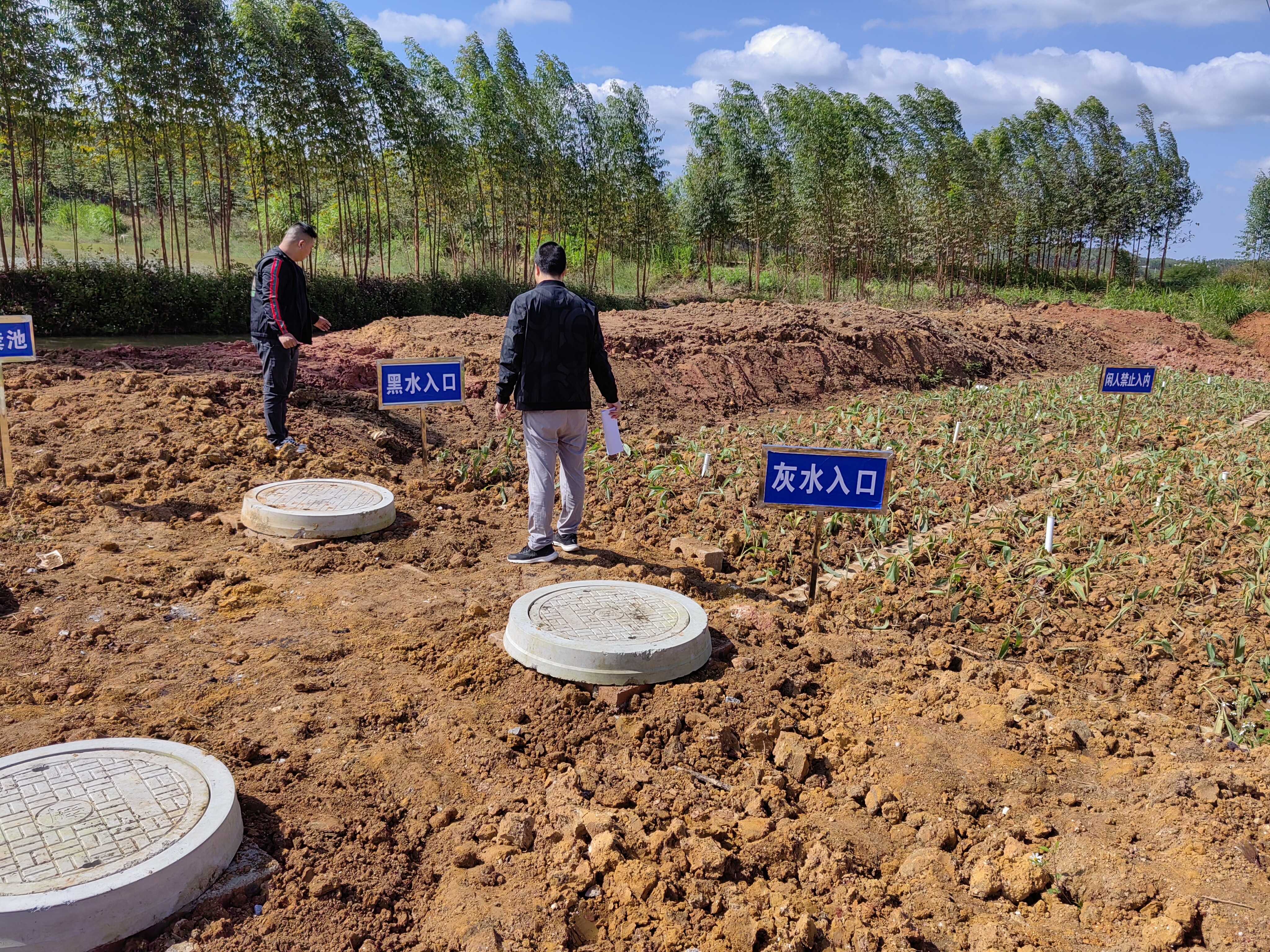 在整村推进示范项目建设中,兴宾区创新采用“三个两、无动力、低成本”核心设计理念,打造农村厕所粪污与生活污水一体化处理利用系统,实现资源循环利用与农业绿色发展的有机结合。该系统中,农户粪便经自设三格化粪池初步处理后,剩余粪污通过黑水管网汇入末端黑水集中处理池深度处理,产出的优质有机肥可直接用于农作物种植;农户生活污水(灰水)经隔油格栅去油除杂后,通过灰水管网收集至末端或庭院式人工湿地净化,处理后的清水可用于农田灌溉,最大化实现水资源高效利用。