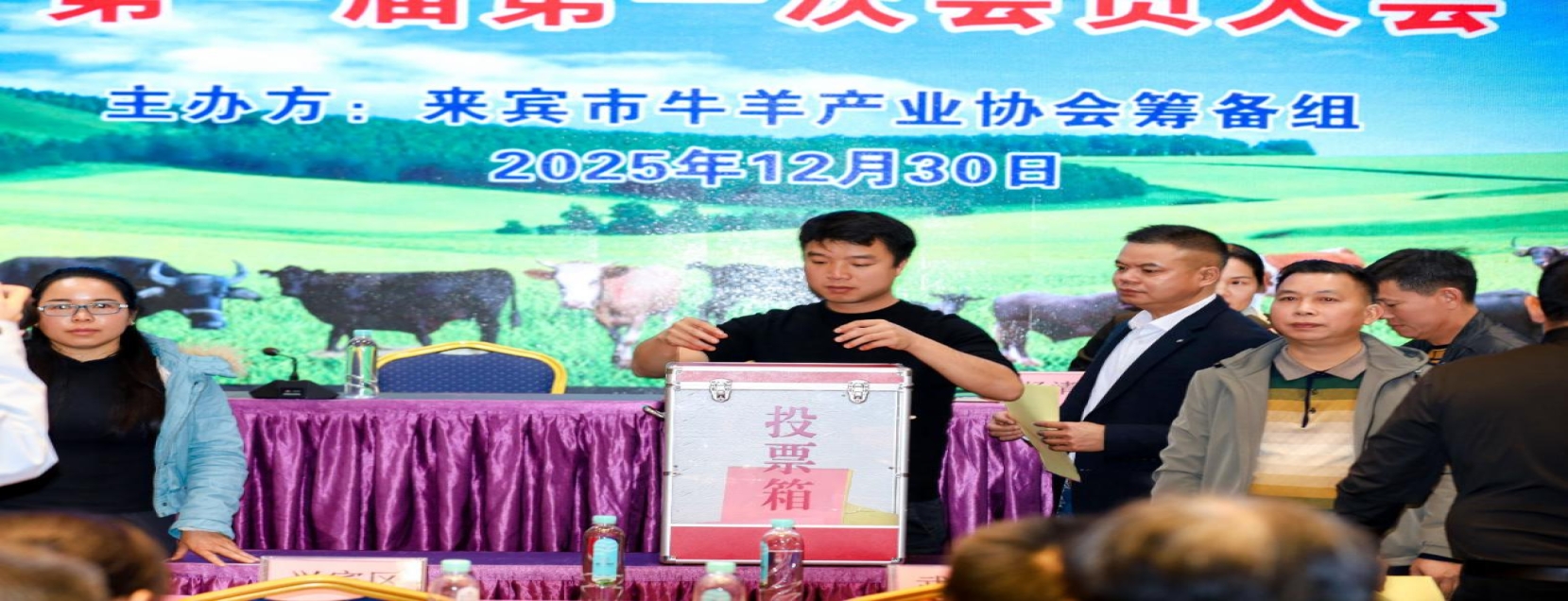 2025年12月30日,来宾市牛羊产业协会成立暨第一届第一次会员大会在来宾市恒丰酒店顺利召开,80余名牛羊产业行业精英、各级行业主管部门负责人齐聚一堂,共同见证来宾市牛羊产业发展史上的这一重要时刻,共商产业高质量发展大计。大会严格遵循选举程序,成功选举产生来宾市牛羊产业协会第一届理事会理事、监事,为来宾市牛羊产业规范化、规模化发展注入强劲动力。