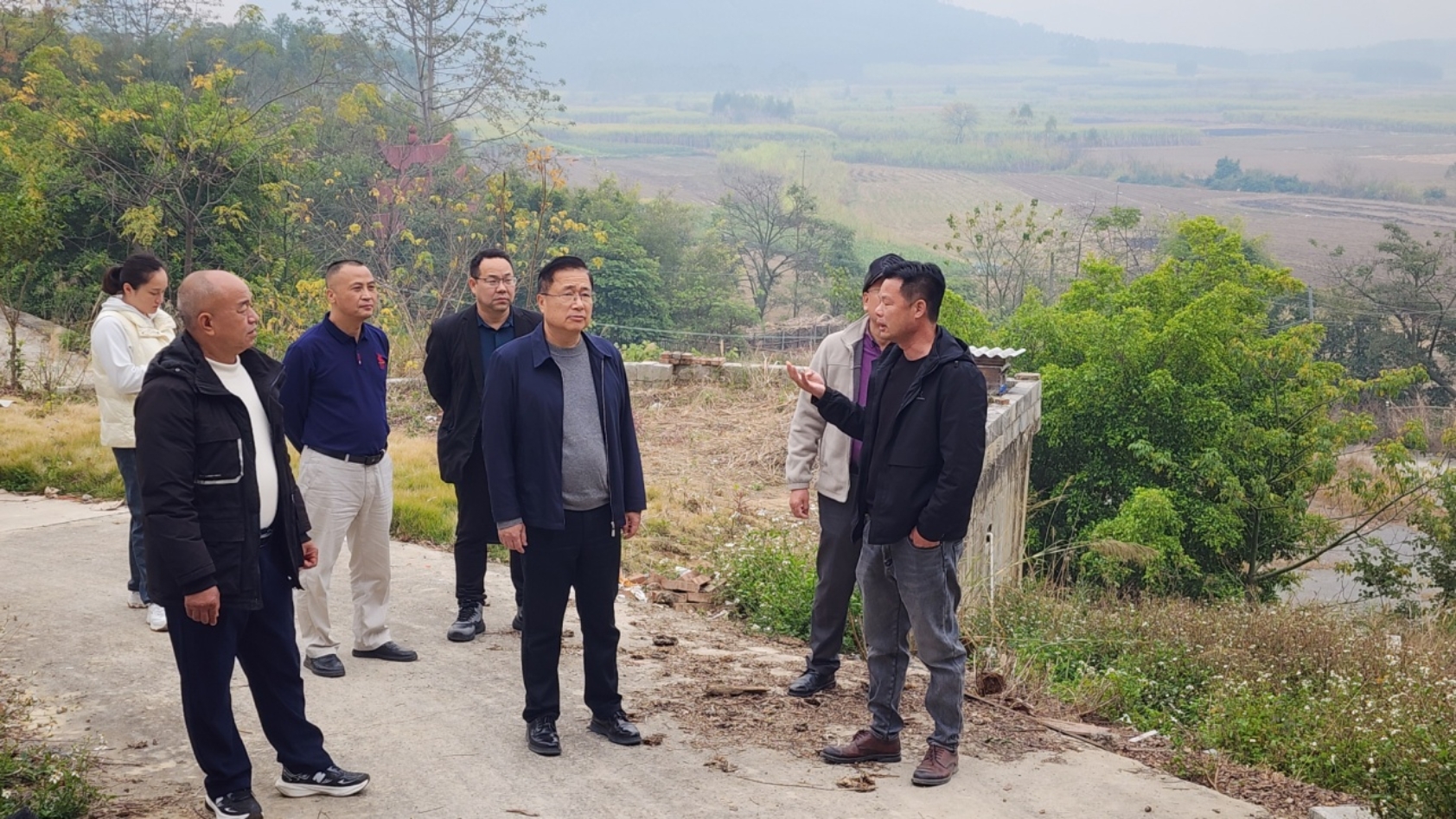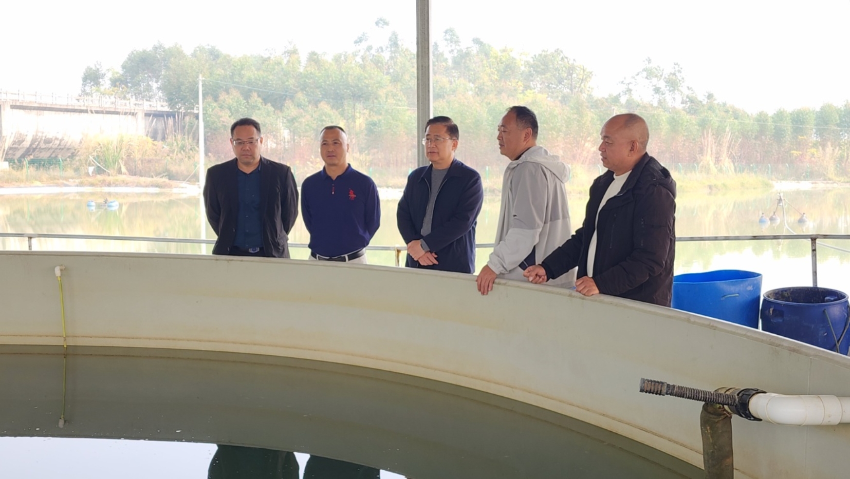 图为来宾市科技局领导、科技特派出员在养殖基地现场指导