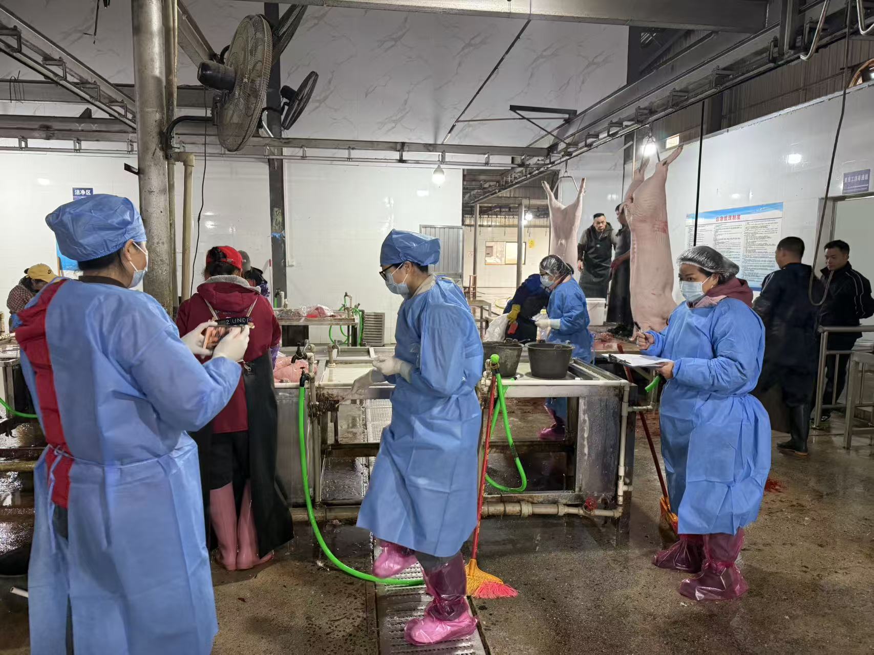 除开展专项采样检测外,工作人员还以此次行动为契机,督促生猪屠宰企业严格落实非洲猪瘟自检制度,规范生猪屠宰生产全流程,进一步强化厂区生物安全防护措施,从源头把控生猪产品质量,降低非洲猪瘟病毒扩散风险。