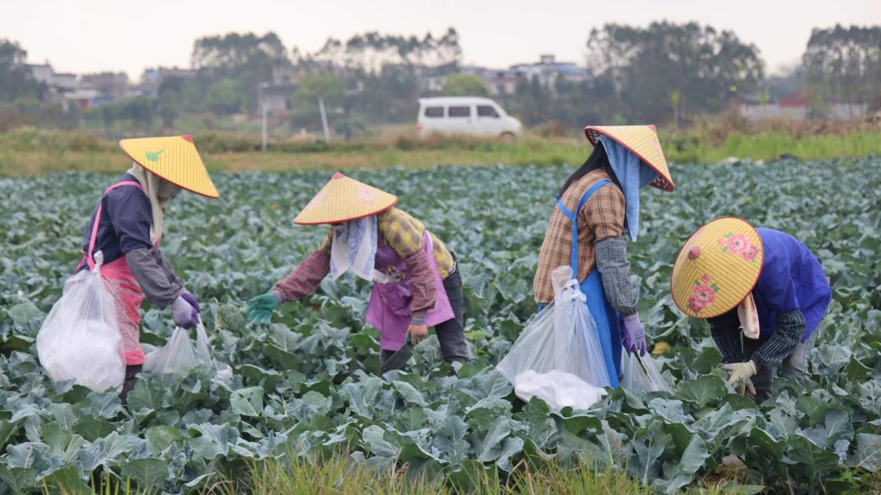村民正在采收西蓝花