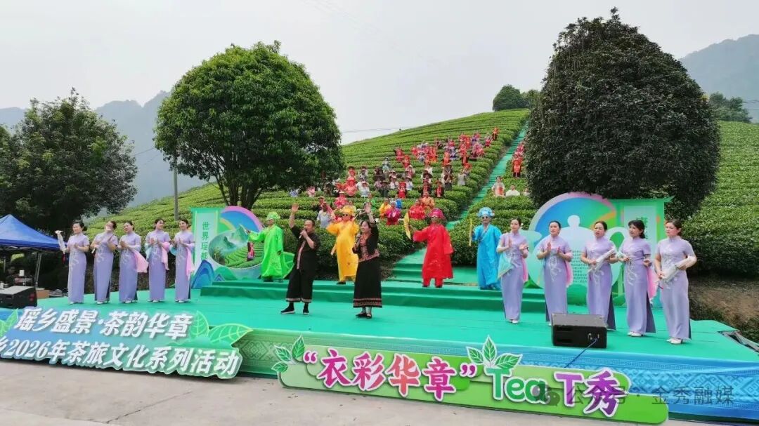 伴随着悠扬的《七彩乡音唱瑶山》歌声,最受期待的“衣彩华章”服饰走秀如期登场。170名来自社会各界的志愿者,身着乡村风、民族风、国风、创意风等各类特色服饰,迈着优雅步伐缓缓走来,生动演绎出“传统与现代碰撞、民族与时尚共生”的精彩图景。瑶族服饰上的精美刺绣栩栩如生,国风服饰的雅致韵味沁人心脾,创意服饰的个性张扬活力四射,与漫山遍野的翠绿茶园交相辉映,构成一幅人与自然和谐共生的绝美画卷。
