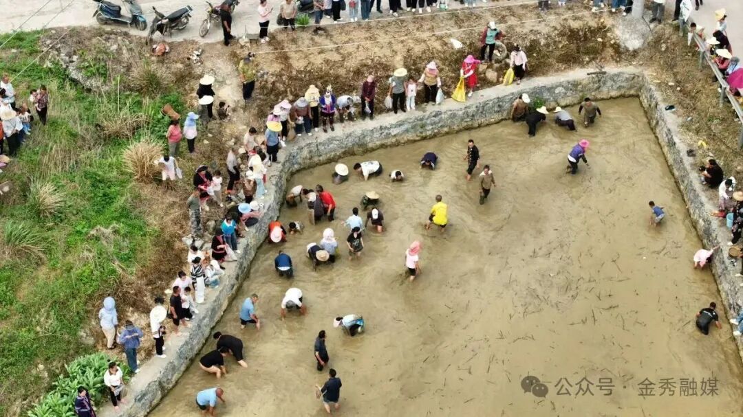 泥塘抓鱼乐翻天,茶旅融合促振兴。金秀融媒 唐辉 摄