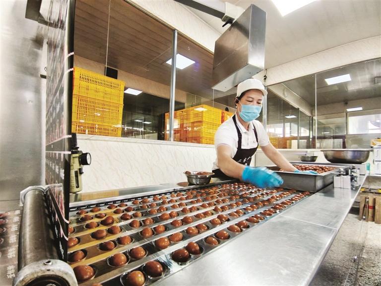 卤制好的鹌鹑蛋进入自动包装线。本报通讯员 芦晓峰 摄