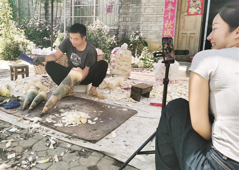 作为90后新农人,夫妻俩巧妙地运用手机这个“新农具”。2020年,沈巧在视频平台直播夫妻俩日常种笋、挖笋、剥笋。黄谣能娴熟流畅的剥笋技能很快引起了网友们的关注,“我们天天看他剥笋习惯了,不觉得他剥得有多快,直到网友提出。”沈巧说。黄谣能剥笋视频的单条播放量最高达1000万。夫妻俩顺势开了网店,出售新鲜的笋切片、笋干等笋制品。