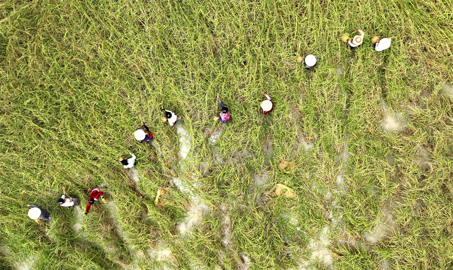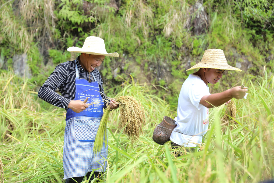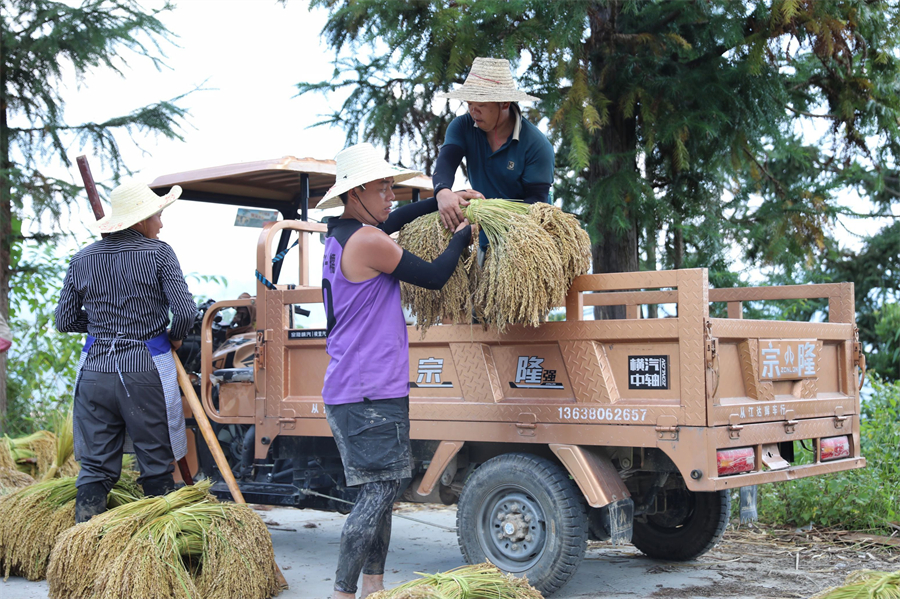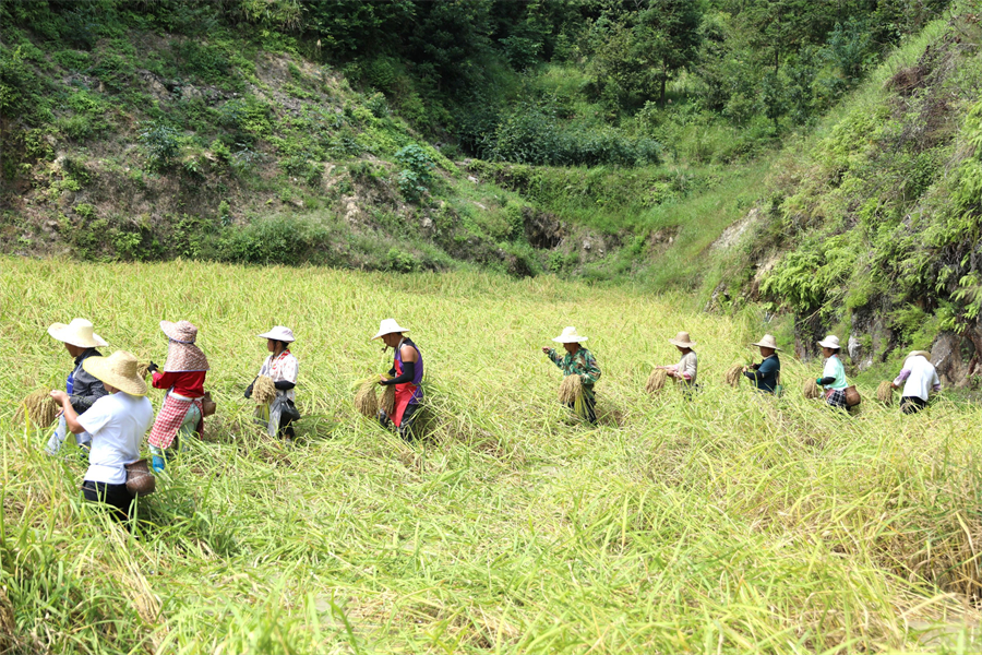 “每年剪禾把时,大家都互相帮忙,效率高多了!”村民杨两六一边剪禾把一边说,他家今年种植近3亩大糯,在邻里协作下,不到一天便可全部收完。