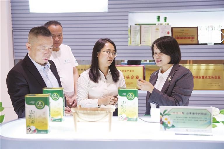 与会人员在广西三门江生态茶油有限责任公司调研。 (通讯员 陈美丽 摄)