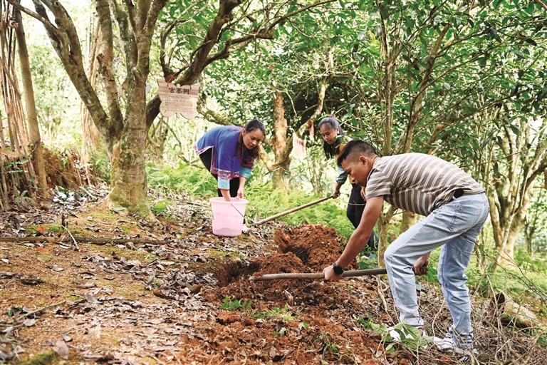 初冬时节,在三江侗族自治县洋溪乡高露村,百年古树茶已经进入冬眠期,而茶农们依然忙着进行茶园管护。