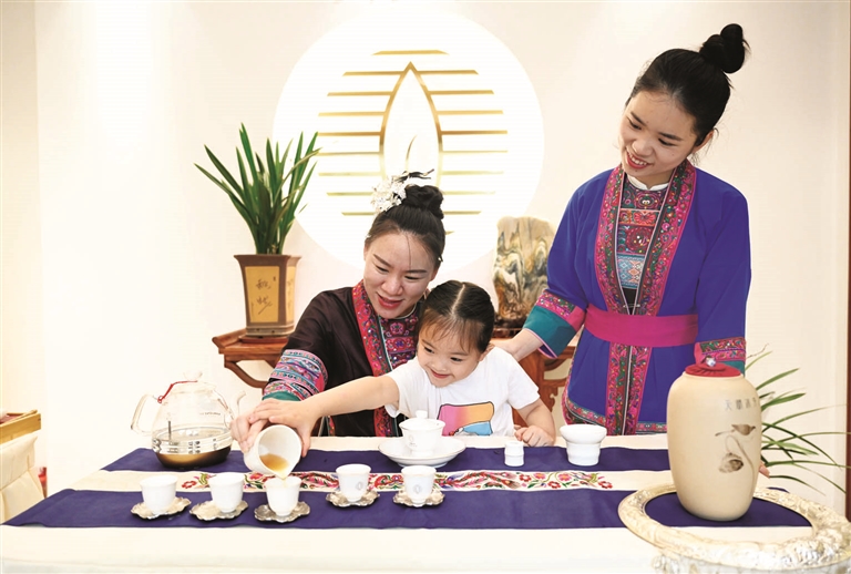 2023年,三江茶制作技艺被列入自治区级非物质文化遗产项目名录。在该县8名代表性传承人中,90后陈婉仪是年轻一代中的佼佼者。作为“茶三代”,她大学毕业后返乡接过外婆和母亲的班。“我与茶叶的缘分,是传承更是发展。”她表示,将用工匠精神做好茶,让这片叶子托起大山里的经济。