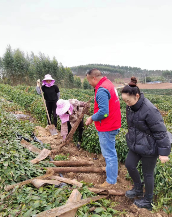 那楼镇农林水利服务中心农技员黄开航指导种植户采收淮山
