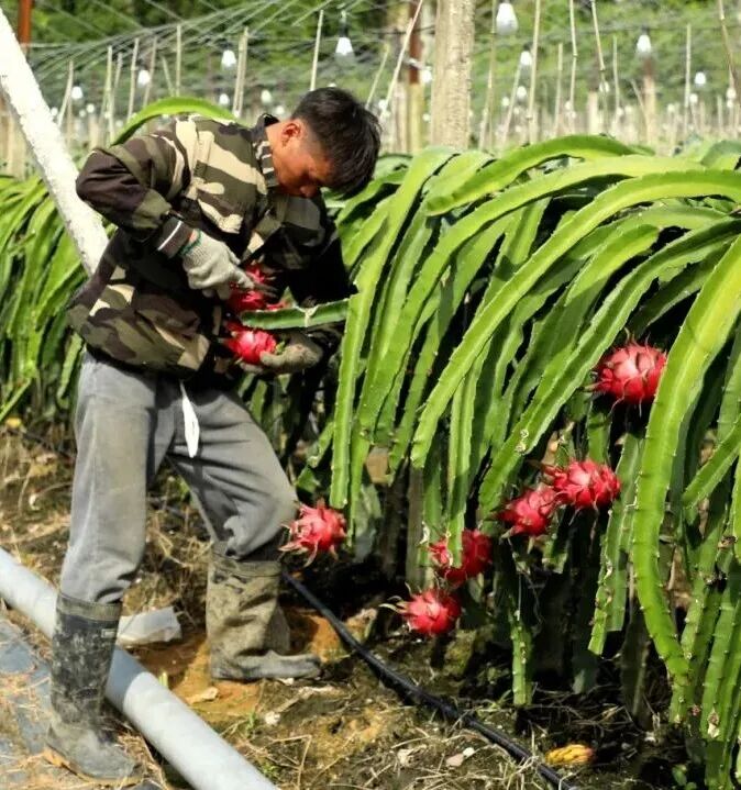 目前,基地火龙果主要销往江浙、河南、高碑店等北方市场,客户渠道稳定。基地创新采用承包制管理,由两人一组承包30亩土地,现有十余组工人作业。“我们的农户采用底薪加提成制,每户年收入可达10至12万元。”高秋鸿说,这种模式不仅提高了生产效率,更有效带动当地农户增收。
