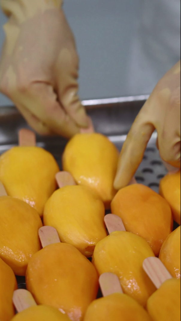 广西恒丰联合农业发展有限公司厂长林佳萍:"我们的芒果通过冷冻之后,它吃起来就跟冰淇淋一样的,非常的丝滑,又很香甜,吃起来也很方便,而且吃得又非常的健康。"
