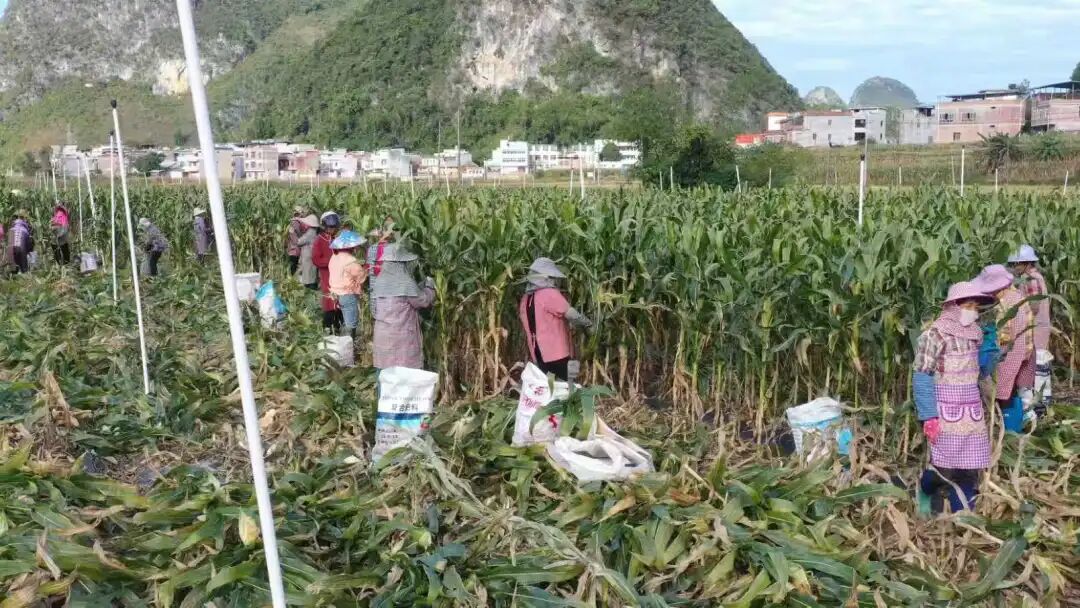 马山县周鹿镇妙圩村玉米制种基地开镰 奏响秋冬丰收序曲