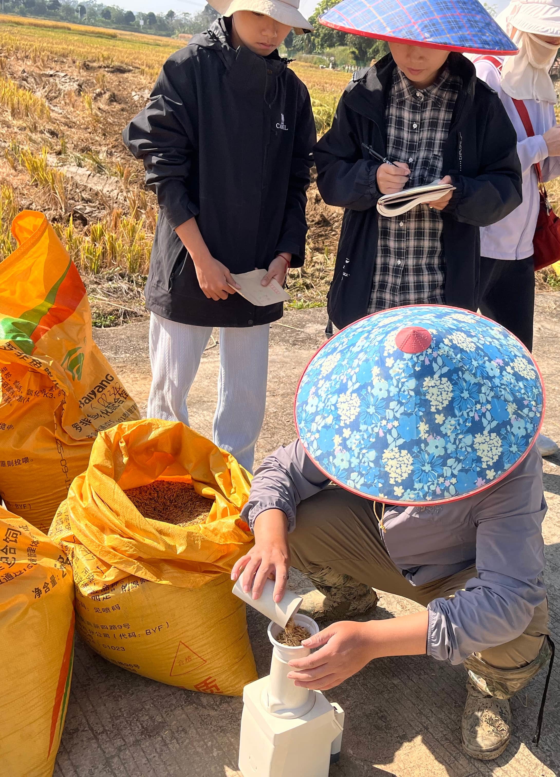 秋收时节,西乡塘区农业农村局测产队伍奔走在每一个单产提升示范片区,农技人员手持测产工具,弯腰穿梭在田间,认真称量、细细记录。田埂上稻浪翻滚,仿佛是在为科技转化的丰硕成果喝彩。测产坛洛镇裕哥公司示范田时,不时能传来测产员喜悦的声音:“公司选用的吉香优金香很是高产哦,加上合理密植,湿重预计能超过1400斤/亩,比去年提升真不少……”测产数据报出的那一刻,种植户瞬间炸开了欢腾。测产结果像是给种植者颁发的“荣誉勋章”,这一勋章虽然没有金银璀璨,却镌刻着大地的馈赠、农户的耕耘和科技的力量,虽不挂在胸前,却沉甸甸地藏在心里。