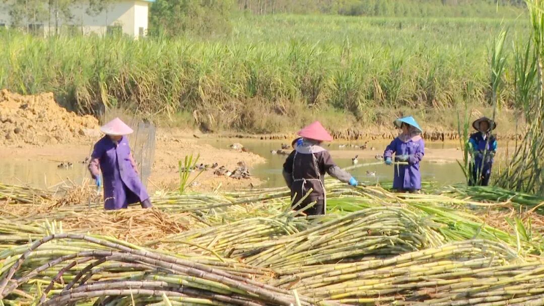 眼下正值糖料蔗丰收季。宾阳县洋桥镇界塘村的糖料蔗种植户们正忙着采收、捆绑、装运,将成熟的糖料蔗销往糖厂,绘就出冬日里的增收图景。
