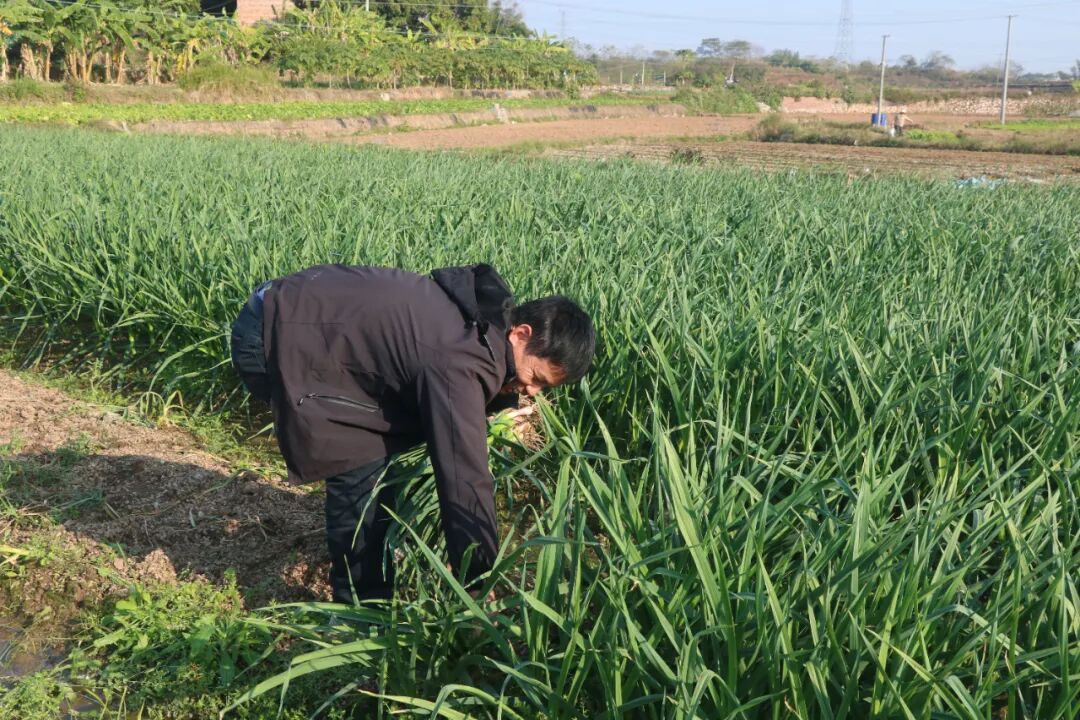 黄世伟正在采收香蒜。