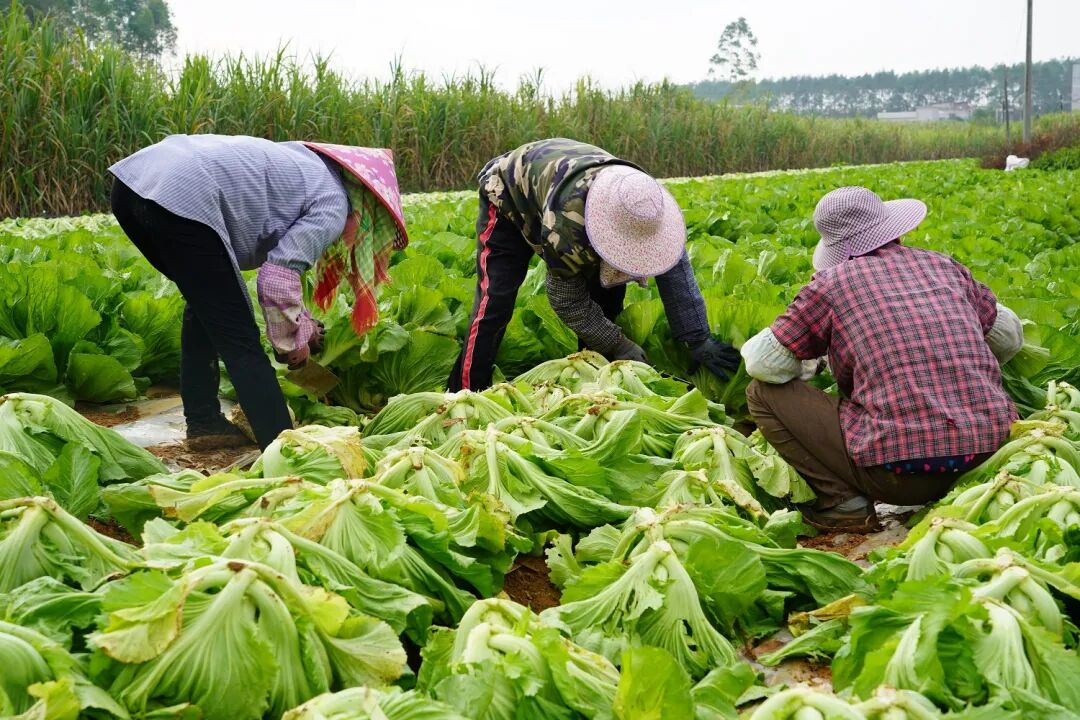 走进种植户周芳玲的玉芥菜田,连片的菜畦齐整延展,宛如一条条铺展在田野间的绿丝带。田埂上,工人们持着镰刀弯腰作业,一棵棵玉芥菜被利落切断,整齐倒置于垄上晾晒。“今年我种了近百亩玉芥菜,亩产稳定在1.2万到1.4万斤,采收进度比往年快了不少。”望着眼前的丰收景象,周芳玲脸上洋溢着欣慰与自豪。