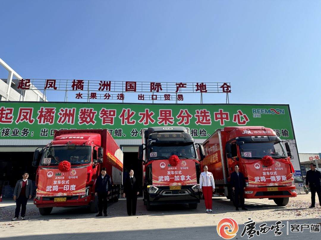 1月8日,3辆满载武鸣沃柑的货车启程前往俄罗斯、加拿大和印度。